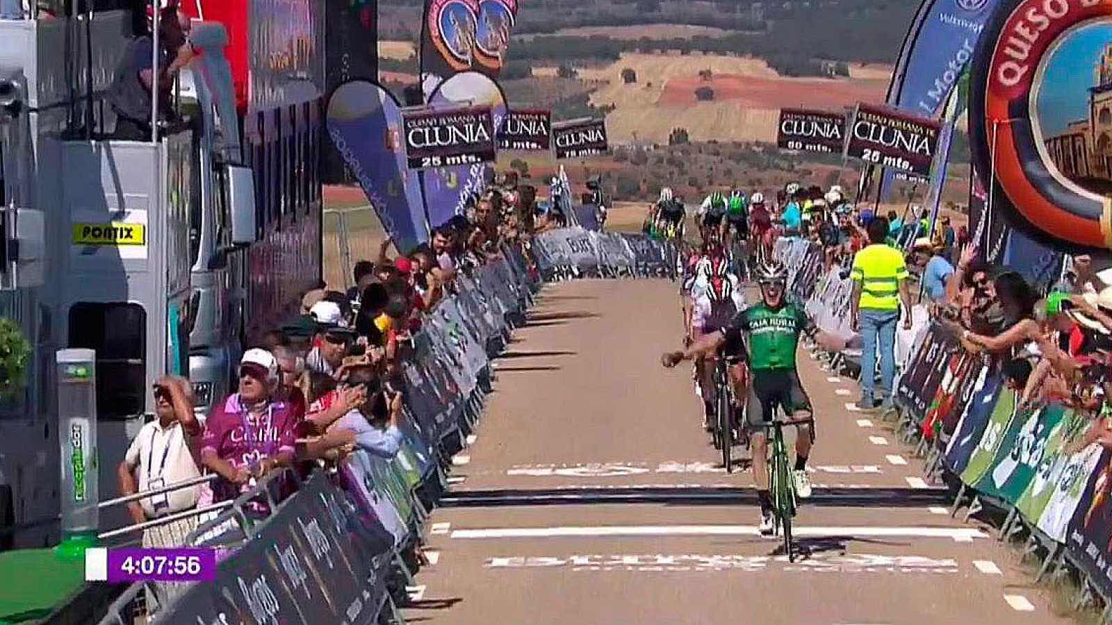 Dos victorias de cuatro posibles. Es el balance de lo que se lleva disputado de la Vuelta a Burgos para el Caja Rural-Seguros RGA. Después de la victoria de Jon Aberasturi en Lerma, hoy ha sido Alex Aranburu quien ha logrado el triunfo en Clunia. Una victoria que le permite resarcirse de lo ocurrido en la primera etapa de la ronda burgalesa, en la que Giacomo Nizzolo batió por la mínima a Aranburu. Hoy se ha vengado de aquella derrota, prolongando así el dominio de su equipo en la carrera de casa, al menos, en lo que respecta a las victorias parciales, ya que en la general todo parece encaminado a un nuevo triunfo de Iván Ramiro Sosa, como el conquistado el año pasado.