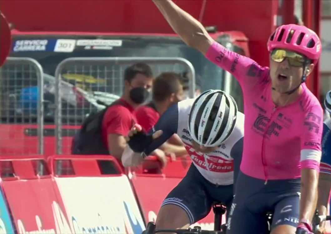 En sprint reducido en el que se resolvió la prueba el ganador fue el gran favorito, Magnus Cort Nielsen, que suma así su tercer triunfo de etapa en esta Vuelta. Una victoria soberbia que celebró casi con más efusividad su compañero de equipo en la fuga que él mismo. Un triunfo excepcional, no sólo por el hecho que suma su tercera etapa, sino por la forma en la que lo ha conseguido, con ese pulso permanente con el pelotón.
