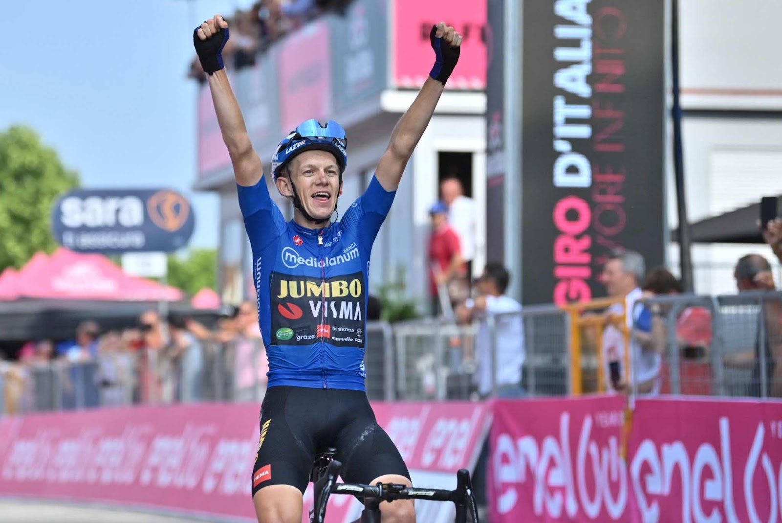 Mientras se hacía la selección en el grupo delantero, en el que se fueron hacia adelante Bouwman, Schmid, Tonelli, Valter y Vendrame, no hubo movimiento entre los hombres de la general en el Kolovrat, el puerto más duro del día, que supuso un paso fugaz del Giro por Eslovenia. Entre esos cinco, se impuso Bouwman, que ya había ganado una etapa en este Giro, y que además ha sentenciado la clasificación de la maglia azzurra de líder de la montaña. Giro redondo para el corredor neerlandés. El final ha sido alto accidentado, por una curva en la que Vendrame y Schmid han hecho un recto y se han quedado sin opciones de victoria después de que Bouwman les cerrara. Un final algo polémico, pero sin sanción de los jueces.